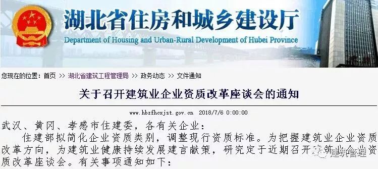 近日湖北省建筑工程管理局下发“关于召开建筑业企业资质改革座谈会的通知”,会议讨论以下3个议题: