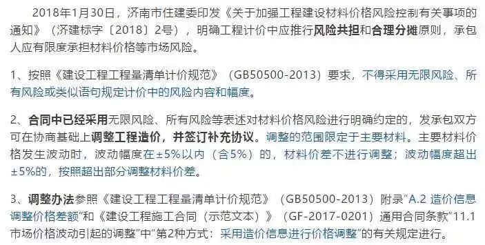 2018年7月27日,河南省建筑工程标准定额站印发《关于加强建筑材料价格风险控制的通知》,提出: